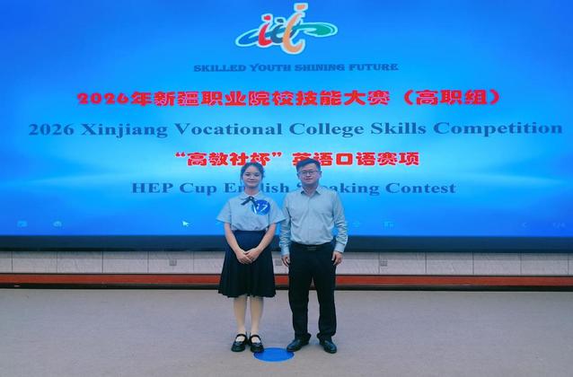 近日,2026年新疆职业院校技能大赛(高职组)“高教社杯”英语口语赛项在乌鲁木齐职业大学圆满落幕。我校教师陈亮与学生刁若愚组成的参赛队伍在全疆32所院校同台竞技的非英语专业组角逐中表现突出,成功斩获总分第四名二等奖。