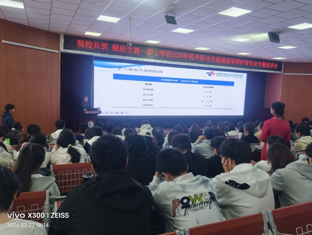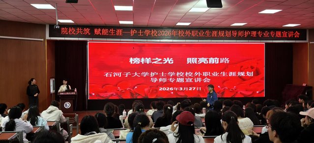 为帮助护理学子明确职业方向、规划成长路径,夯实职业发展基础,2026年3月27日,石河子大学护士学校在阶教101室举办校外职业生涯规划导师专题宣讲会。本次宣讲会特邀自治区康复医院护理部副主任、学校校外职业生涯规划导师赵世玲主讲,全体在校生参与此次活动。